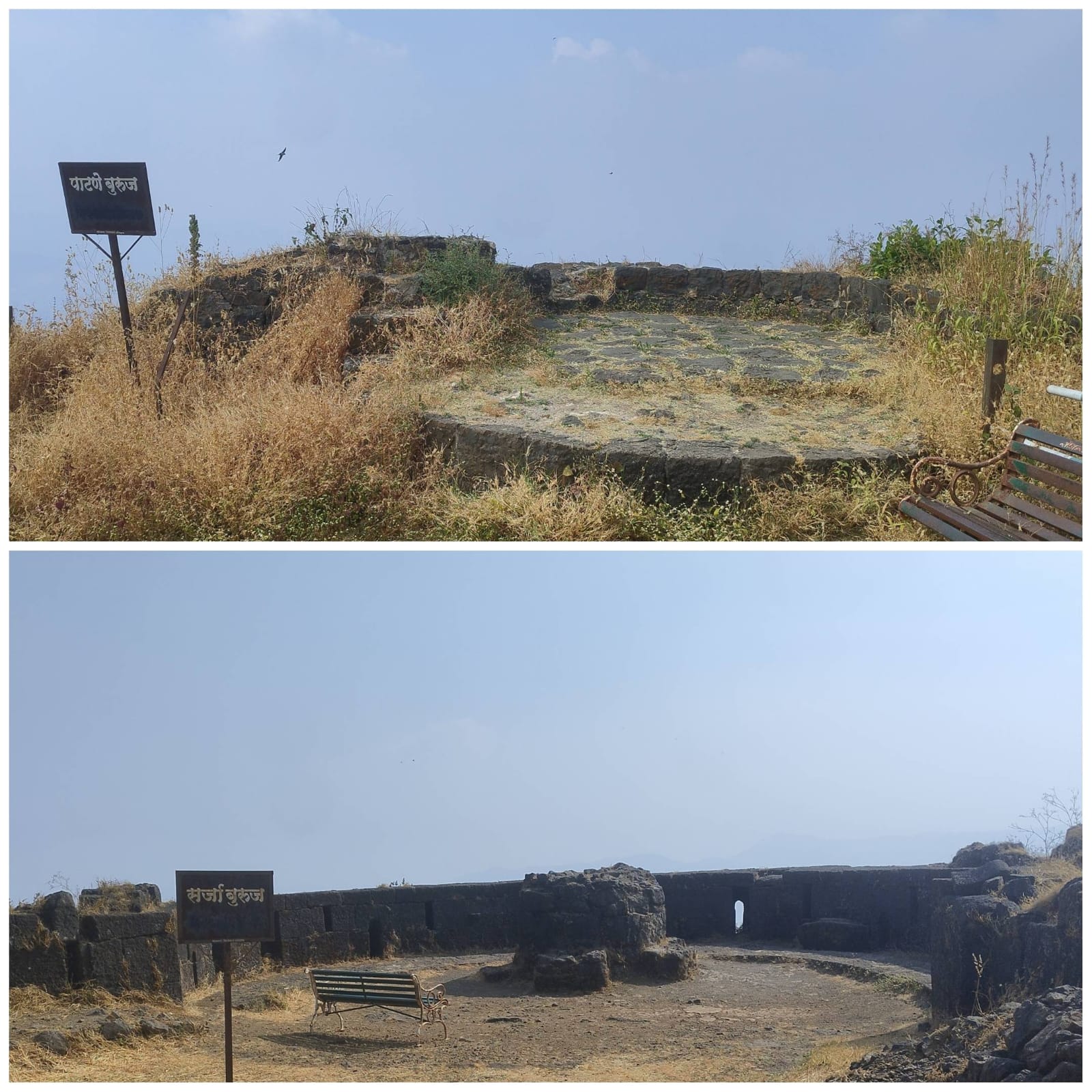 गडावरील सर्वात मजबूत बांधणीचे बुरुज म्हणजे वाघजाई बुरुज आणि शिरवले बुरुज. भक्कम बांधणीच्या या लढाऊ बुरुजांना पायऱ्या आहेत, वाघजाईच्या बुरुजावरून दूर असलेल्या वाघजाई देवीचे दर्शन होते.