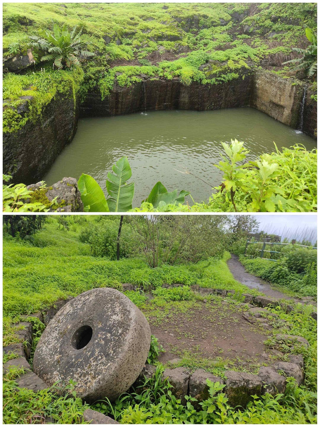 गडाच्या उत्तर भागात पाण्याच्या टाक्यांची माळ पाहायला मिळते, टाक्यांची रचना अशाप्रकारे करण्यात आली आहे की एका मागे एक टाके भरत जातात. येथेच एक भूमिगत टाक्याजवळ शिवपिंड व त्याजवळ बसलेली मानवी मूर्ती आहे. किल्ल्यावर मोठ्या प्रमाणात असलेली टाकी व चुन्याचा घाणा यावरून असे लक्षात येते की नंतरच्या काळात मोठ्या प्रमाणात बांधकाम झाले असावे.